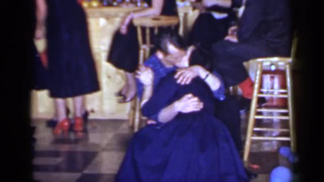 > 1966: two couples kiss for the camera at a lively bar. MINEOLA NEW YORK