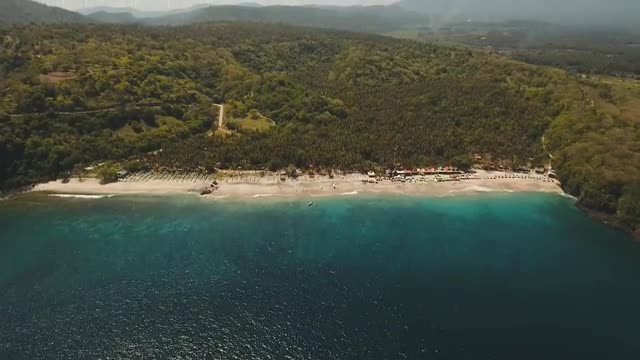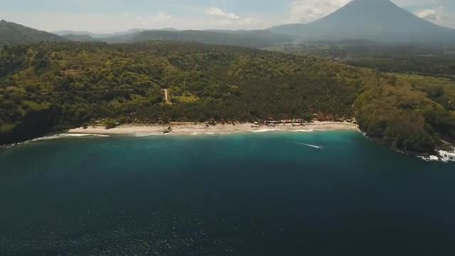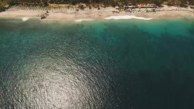 Aerial View on Balangan Beach With Clear Turquoise Water, Rocks, and People in the Ocean, Indonesia, Bali