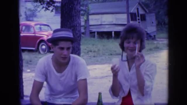 > 1968: boy and girl are sitting,drinking and talking in the nature FLORIDA