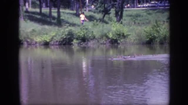 > 1968: a man overlooks a lake where ducks are swimming around. FLORIDA