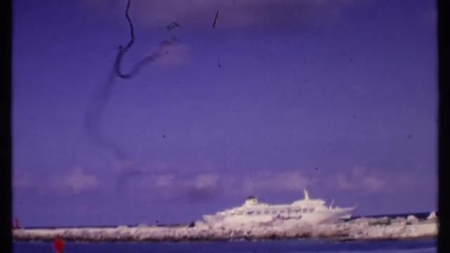 > 1969: video of a yacht at sea taken from the shore so you can see all of the nature around it BAHAMA