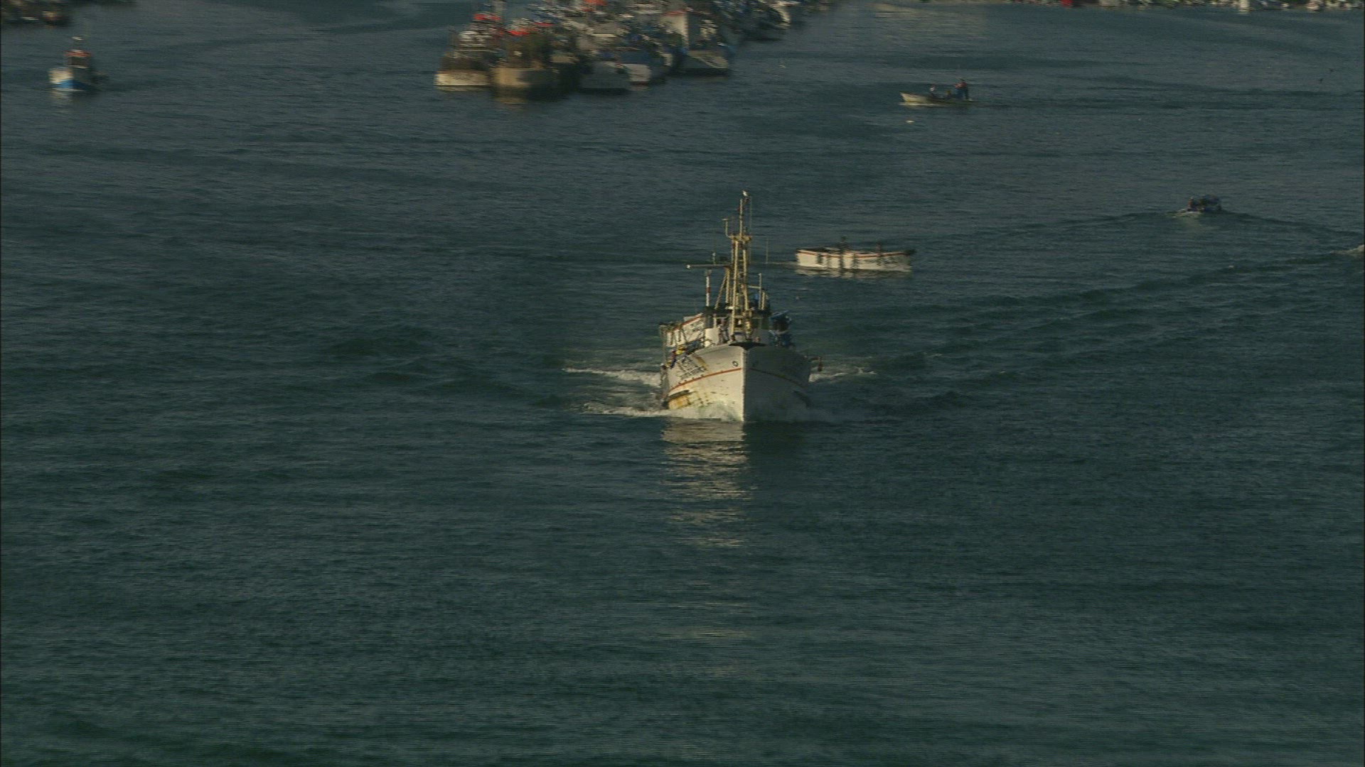 > 1969: footage of a beautiful seaside town taken from a boat. BAHAMAS