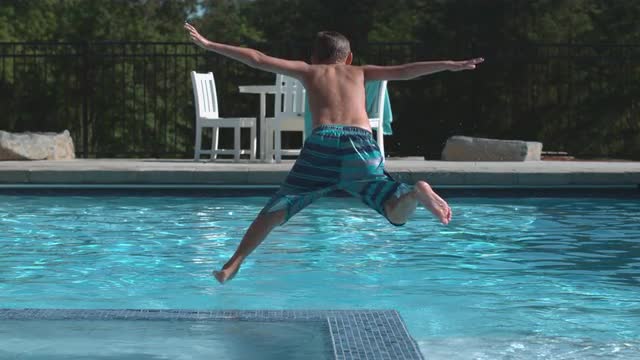 Cheerful Little Boy is Playing and Swimming With Glasses For Swimming in the Pool