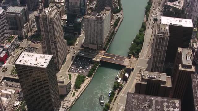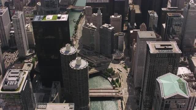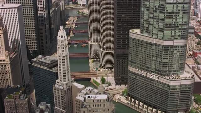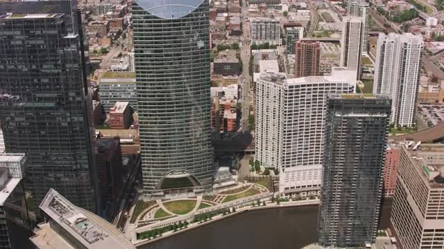 Aerial cityscape view at sunrise of Industrial building, suburban communities commercial premises Chicago city, Illinois, USA, shot on RED EPIC