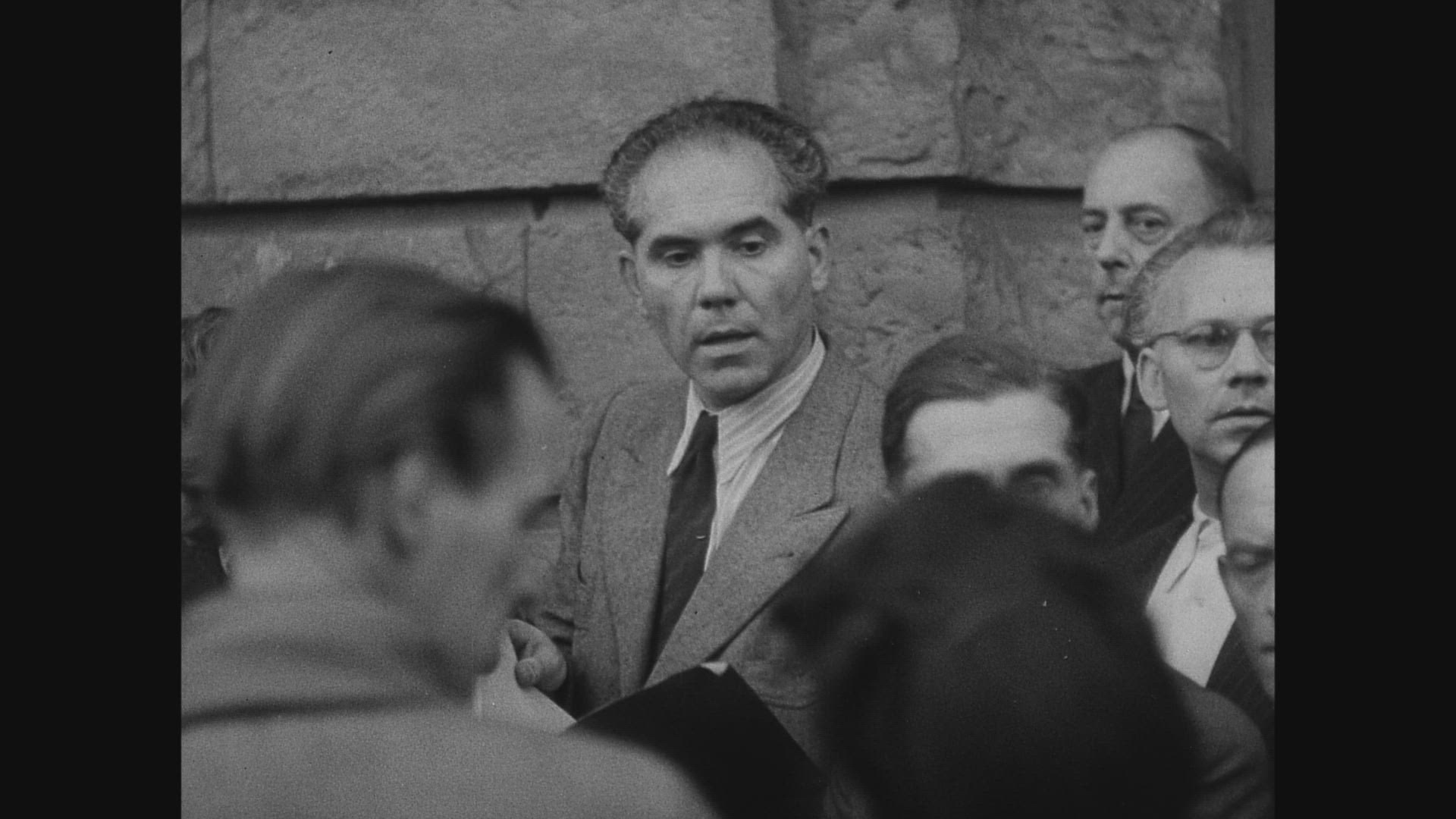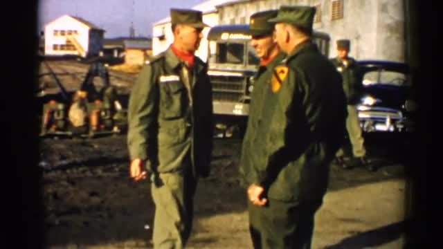 > 1952: group of army men was discussing about something in morning JAPAN