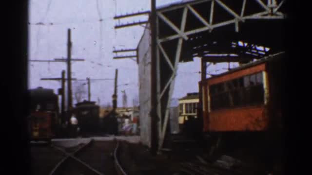 > 1953: the yard of a railway station with repairing shed for trains CONNECTICUT