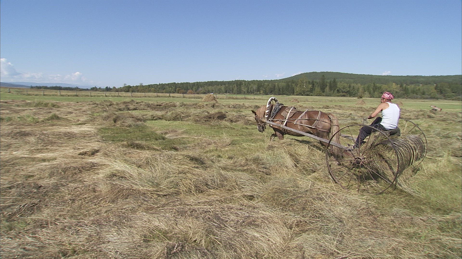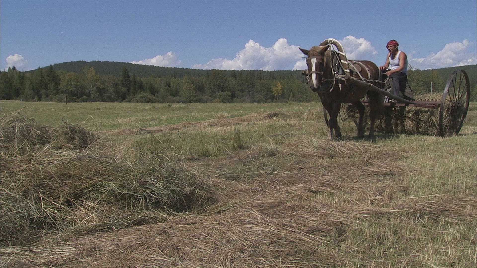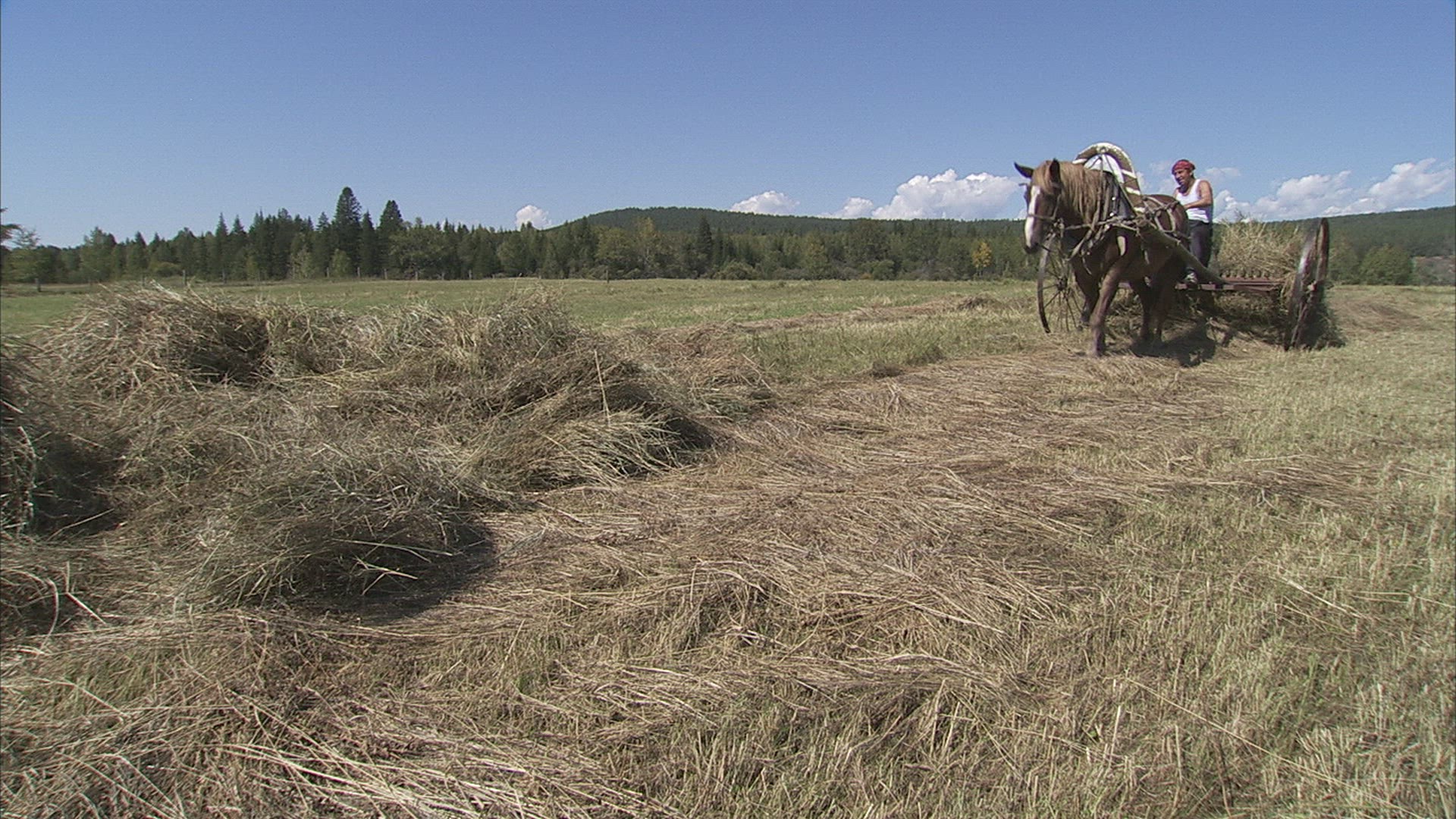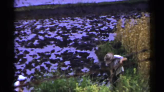> 1953: video of a man working hard in the field getting his field ready for crops JAPAN