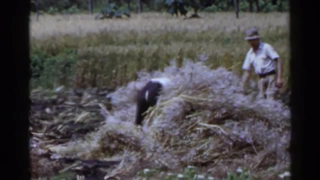 > 1953: it's harvest time and farmers are busy working in the fields and reaping the harvest JAPAN