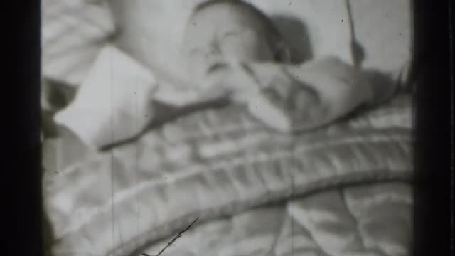 1955: a baby is sleeping on the bed, his face looks like ugly NEW YORK CITY