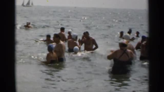 > 1954: a group of people enjoying the refreshing coolness of the sea water NEW YORK