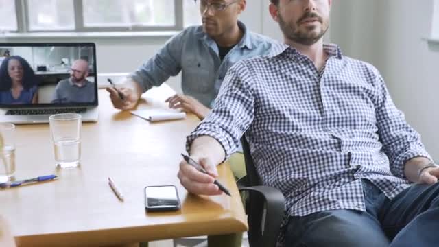 925820 - Businessman texting on cell phone in meeting