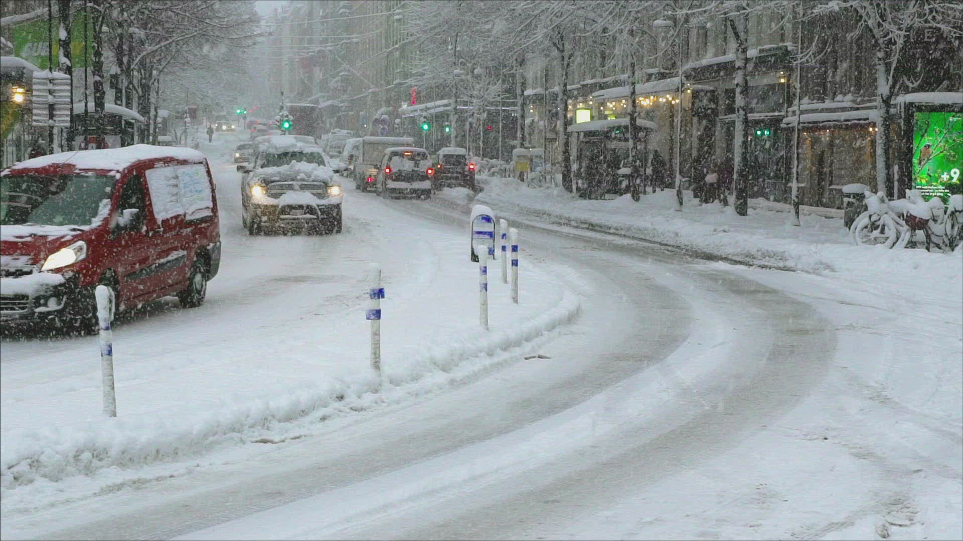 ungraded shot of cars traffic on street in Deep snow and snowfall in Stockholm