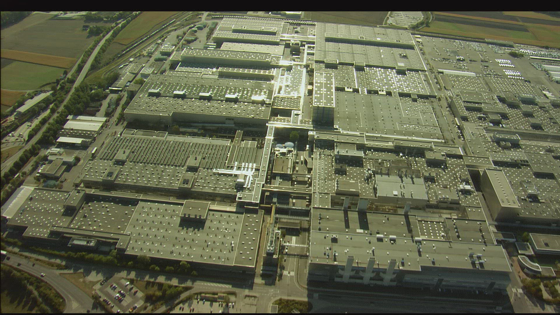 > 1966: a board that represent a symbol of industry and wall some cars are parking road also there HAM