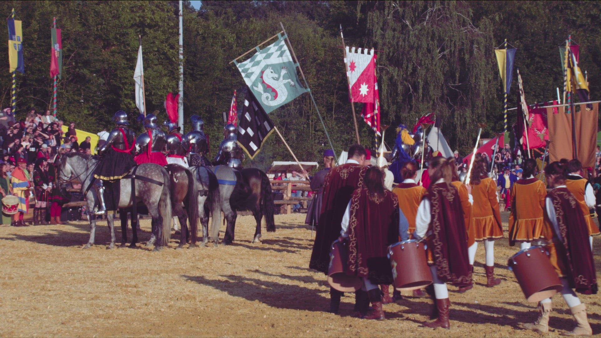 > 1944: a huge number of children go parade on ground with drums and horse also came in the parade SAN