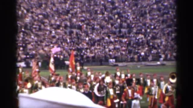 > 1944: there are many people marching on a large field performing in front of an audience SAN FRANCIS