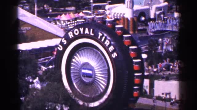 > 1964: an amusement ride shaped like a giant automobile tire towers over an exhibition NEW YORK CITY
