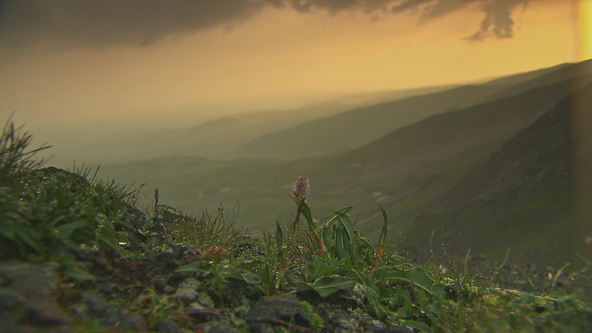 > 1964: sun shinning on different of blossomed flowers. NEW YORK CITY