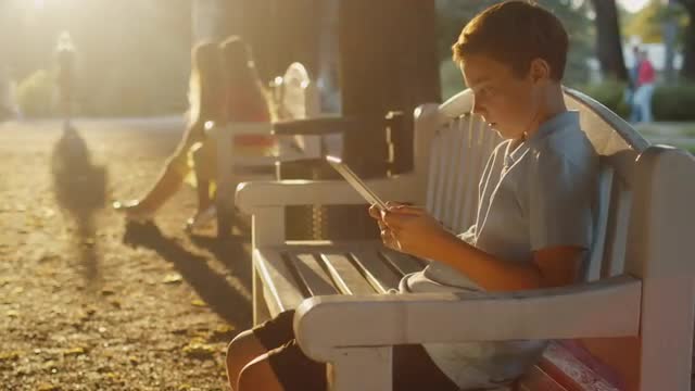 Young girl on a Tablet PC application chooses for himself and is going to download. 4K 30fps ProRes (HQ)