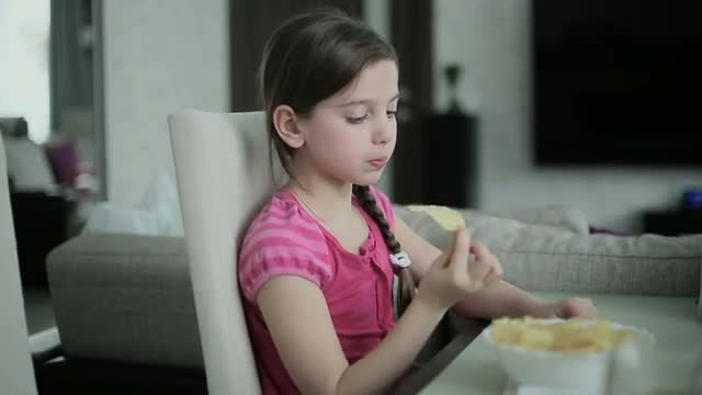 Little girl eating potato chips
