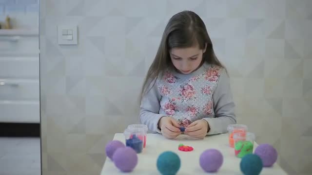 724379 - Girl sculpts clay figure flower