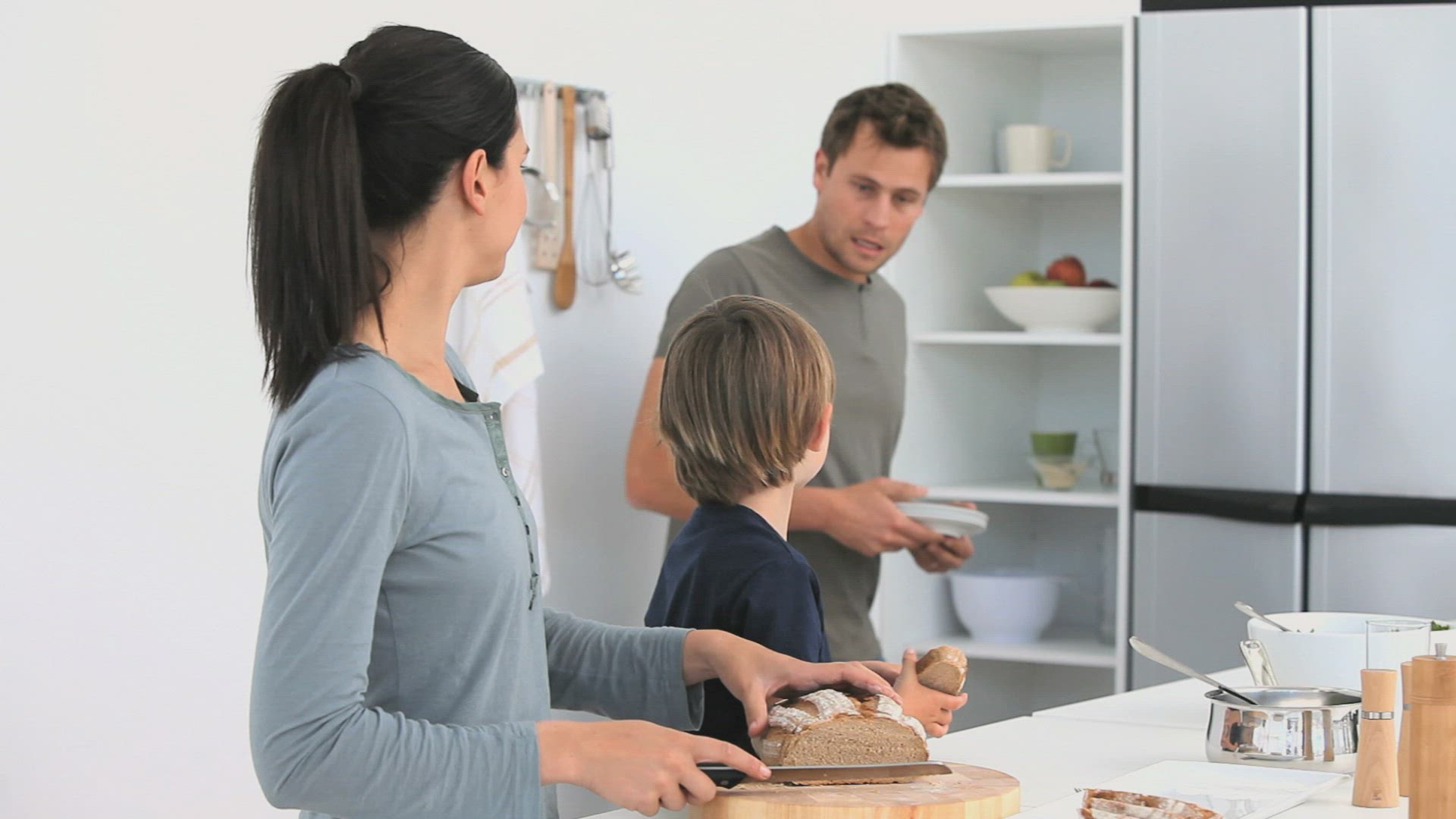 580797 - Mother Uses A Tablet To Pay For Ice Cream For Her Son At Local Ice Cream Shop