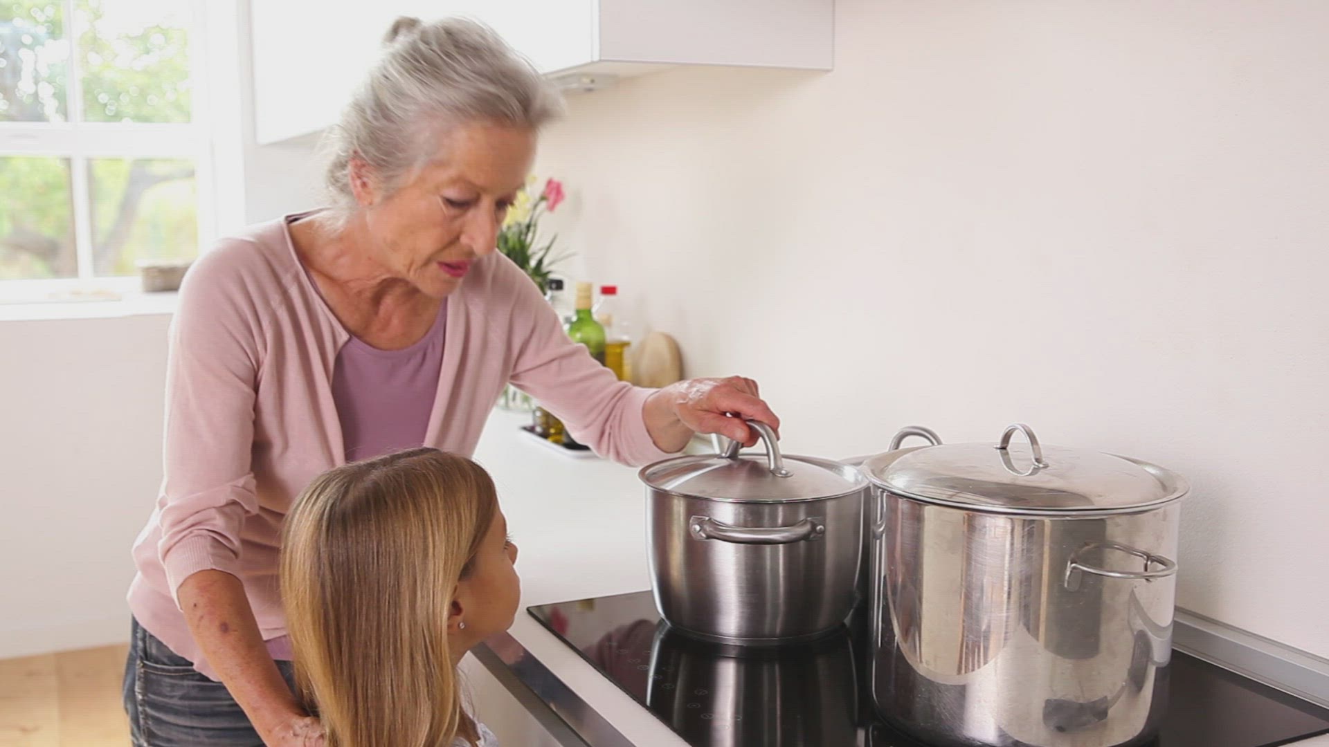 > Girl eating ice cream in the kitchen