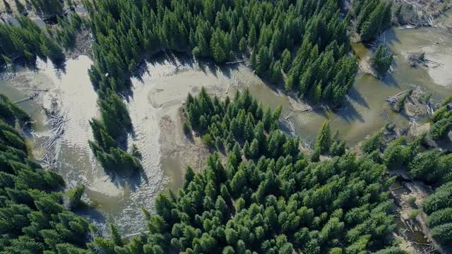 water stream flowing through rocks in mountain forest with green plants in the foreground