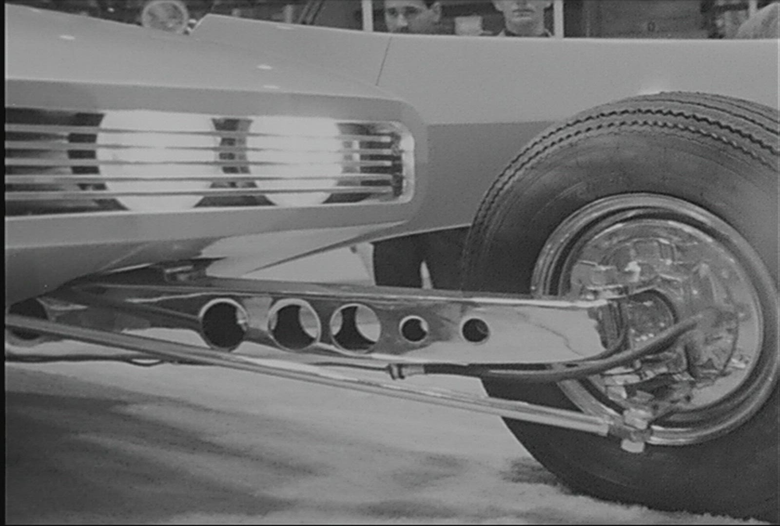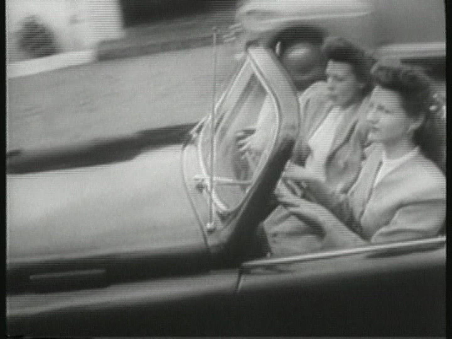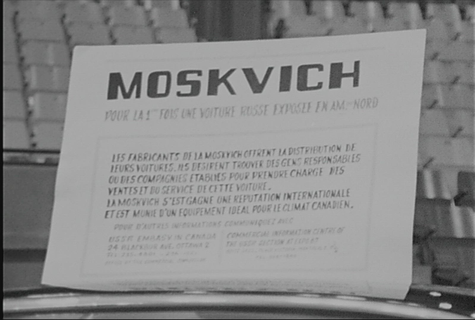 > 1966: woman retrieves a back at home sign made out of a bag from the trunk of a car. EAU CLAIRE WISC