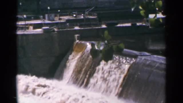 > 1964: a large size pillar placed at the center of the water that looks like dam and trees also surro
