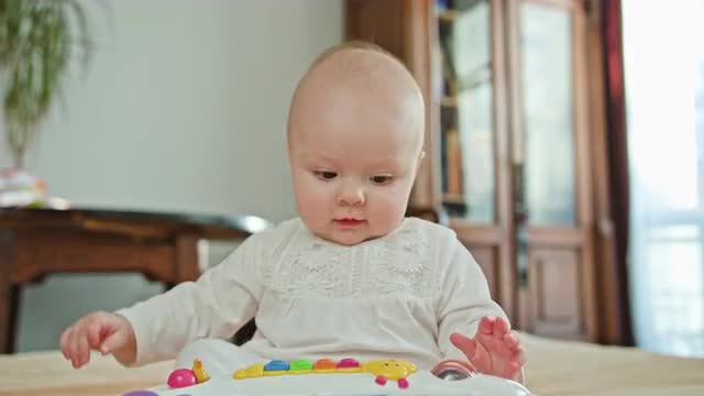 > 1959: a cute baby playing with his toys given to him by his mother. MICHIGAN