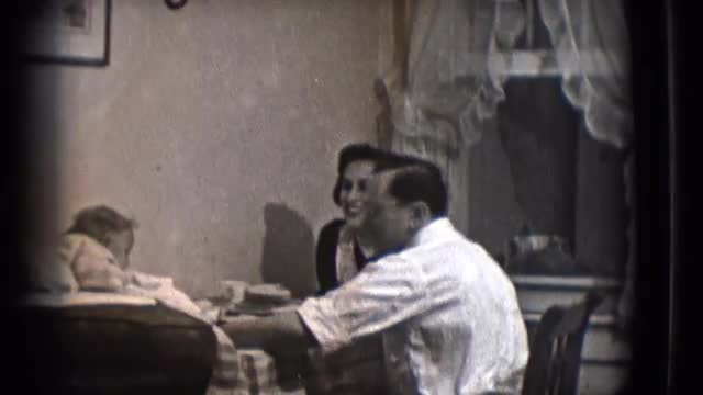 > 1959: family people are gossiping on a meal, fun time moment for family MICHIGAN