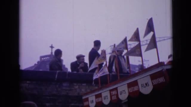 712013 - 1962: four men stand at brick partition in front of church and over souvenir booth LONDON ENGLAND