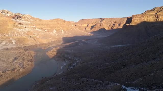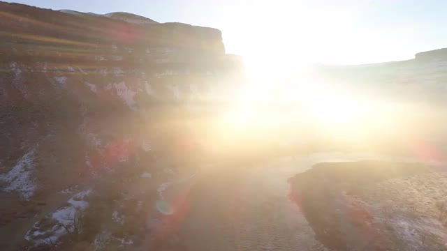 1050499 - Aerial view flying towards the Green River as sun lights the cliffs