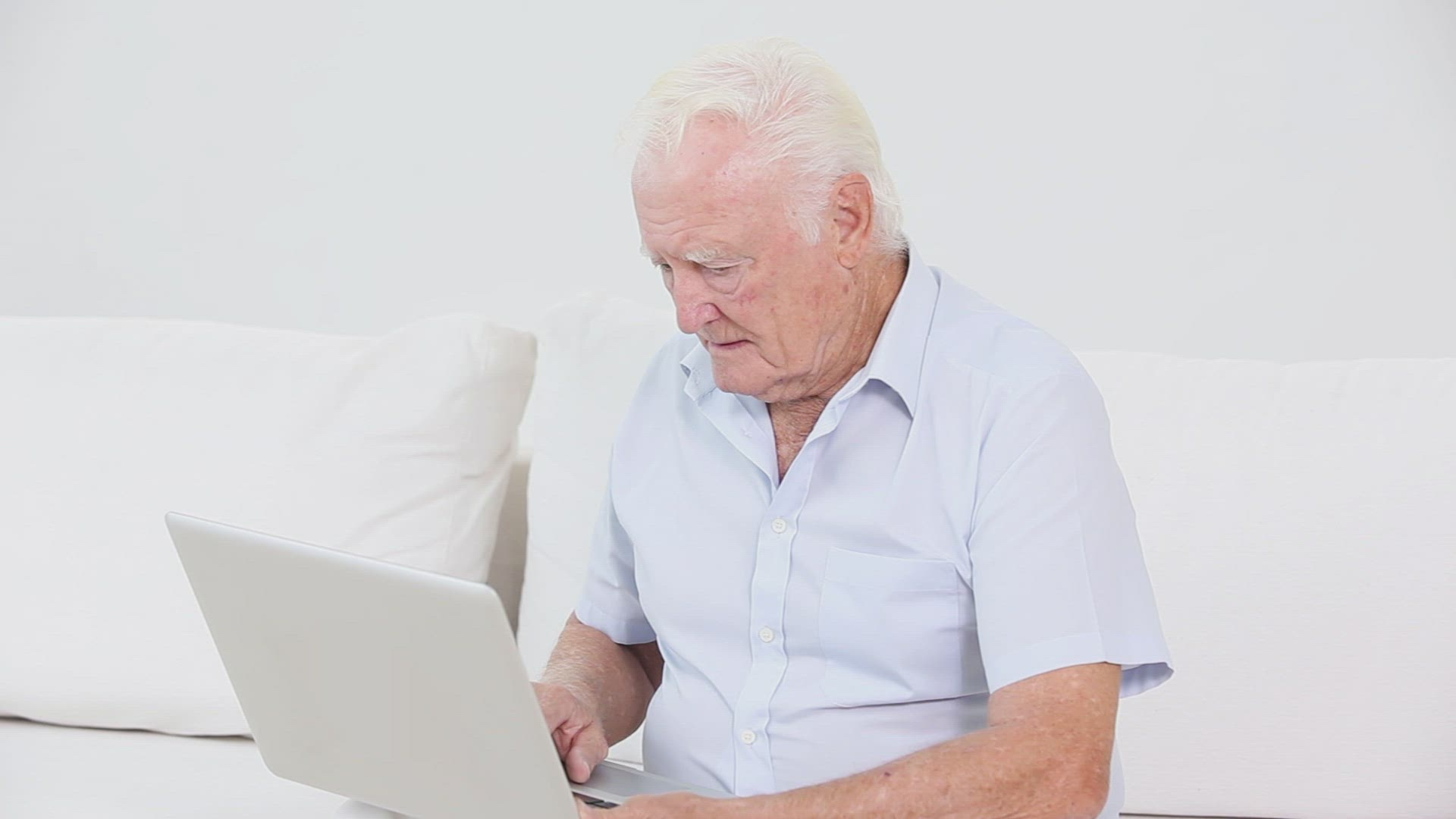 Man Pensioner Enthusiastically and Happily Listening to Songs From His Youth Sitting in Comfortable