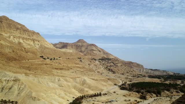 85369 - A mountain and Ein Gedi palm trees shot in Israel.