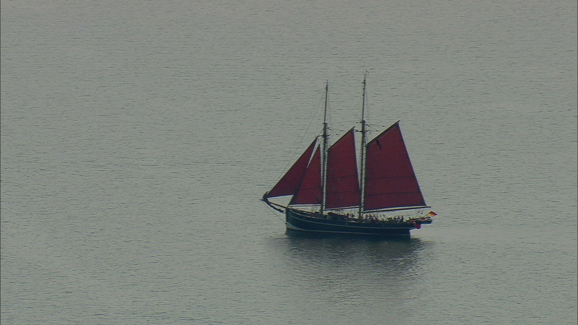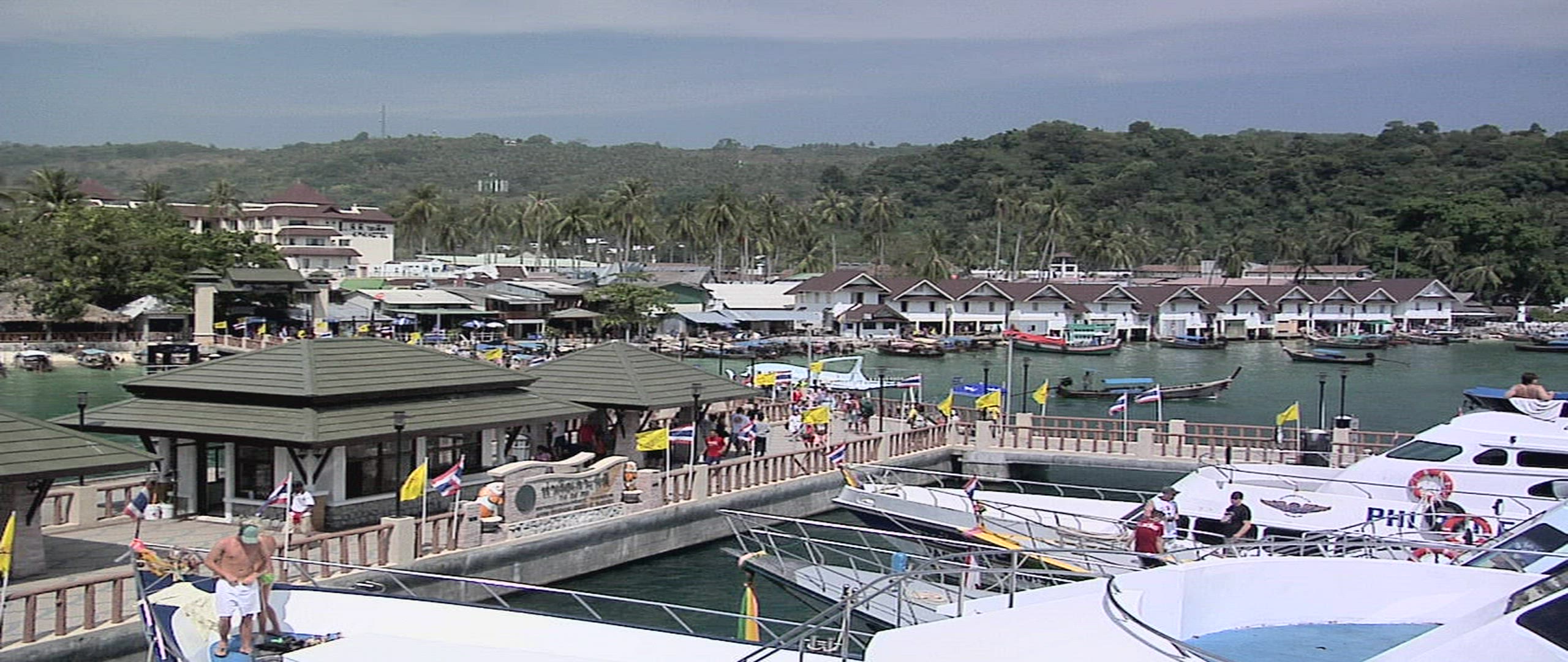 > 1959: a boat slow run in the harbor near stop the another boat water coconut tree and wall morning t