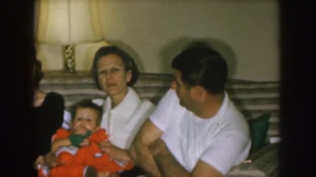 > 1959: an older man and woman are playing with a boy and a baby girl in a living room. FLORIDA