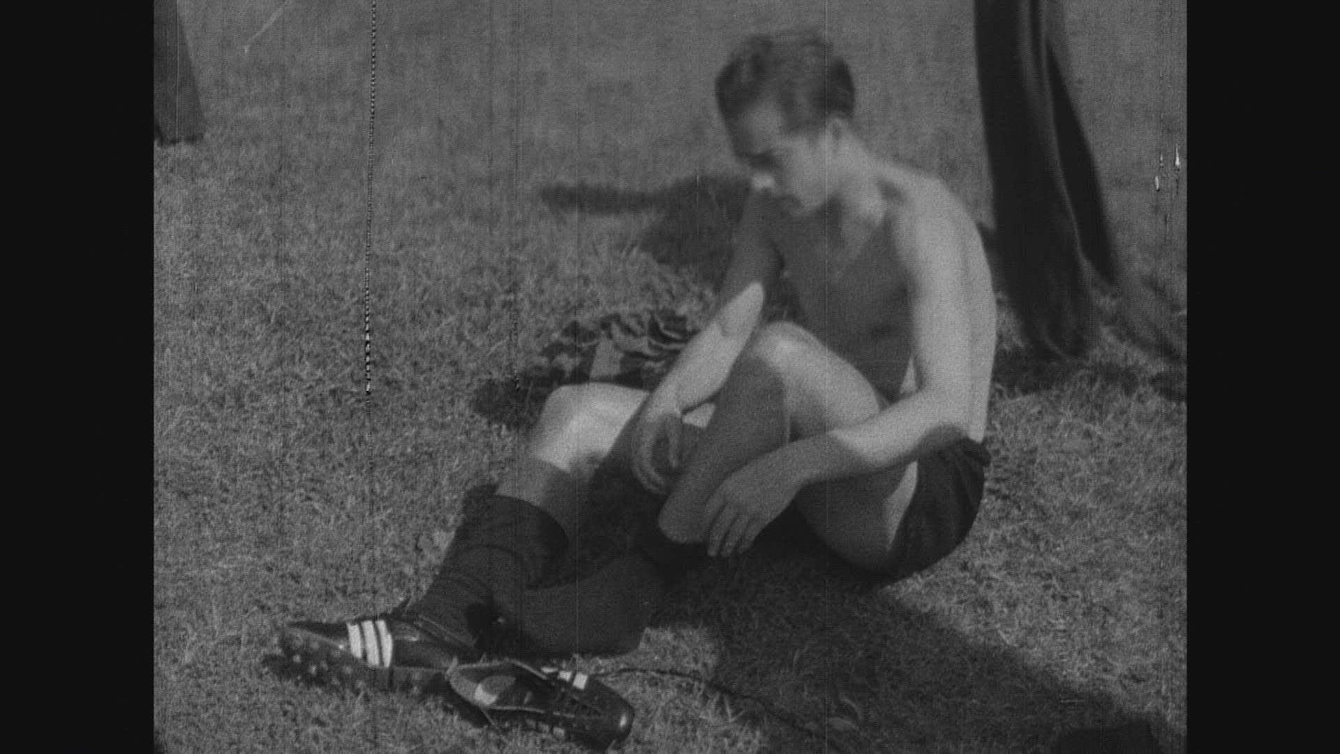 1969: fast run for the football match player run the ground follow the ball OHIO
