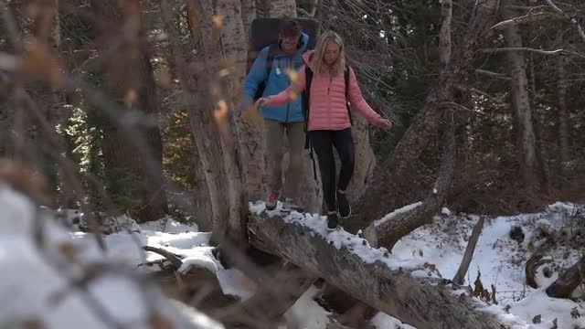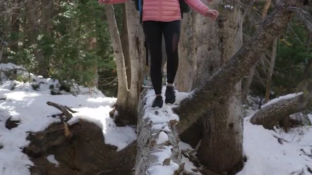 feet running through the snow in slow motion foggy this is available in 6k as well.
