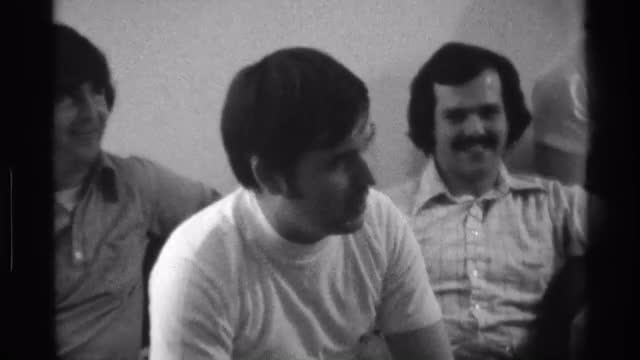 > 1976: party of friends gathered in table,enjoying eat KENTUCKY