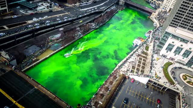 Downtown Chicago after turning river green for St. Patrick's Day