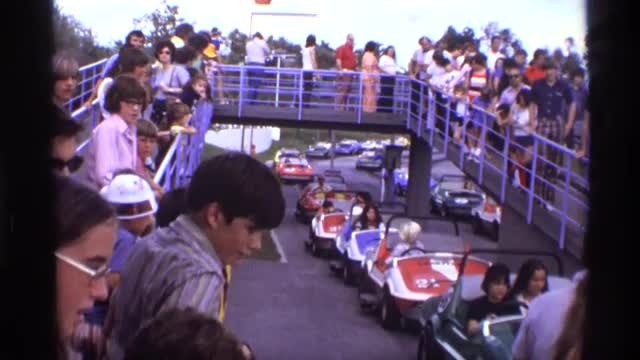 > 1974: cute view of go cart race where kids are enjoying their holiday in a park and making fun in pa