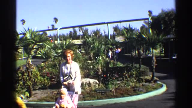 > 1969: women moving baby trolley with a child in it and watching another child playing near FLORIDA21