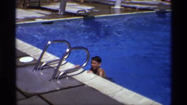 1971: children swim in a pool on a bright sunny day. NEW YORK