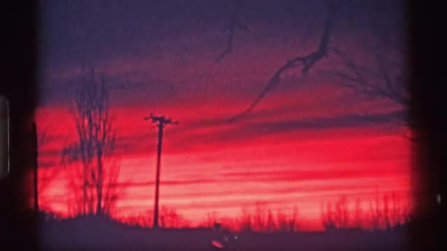1969: streaks of white and black cross horizontally against red sky at night WISCONSIN