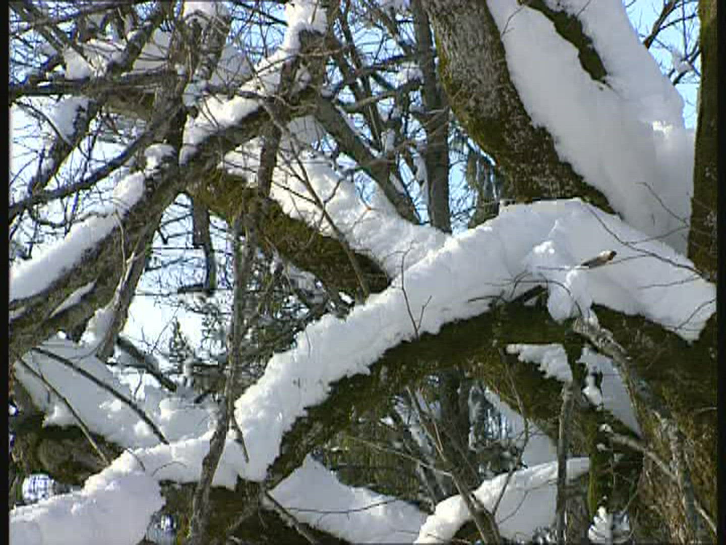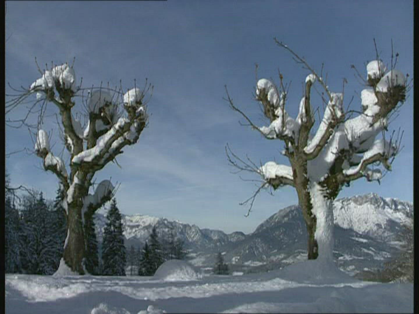 > 1969: nice view of nature and snow in an chime surrounded by trees in a snow field of seems like lig