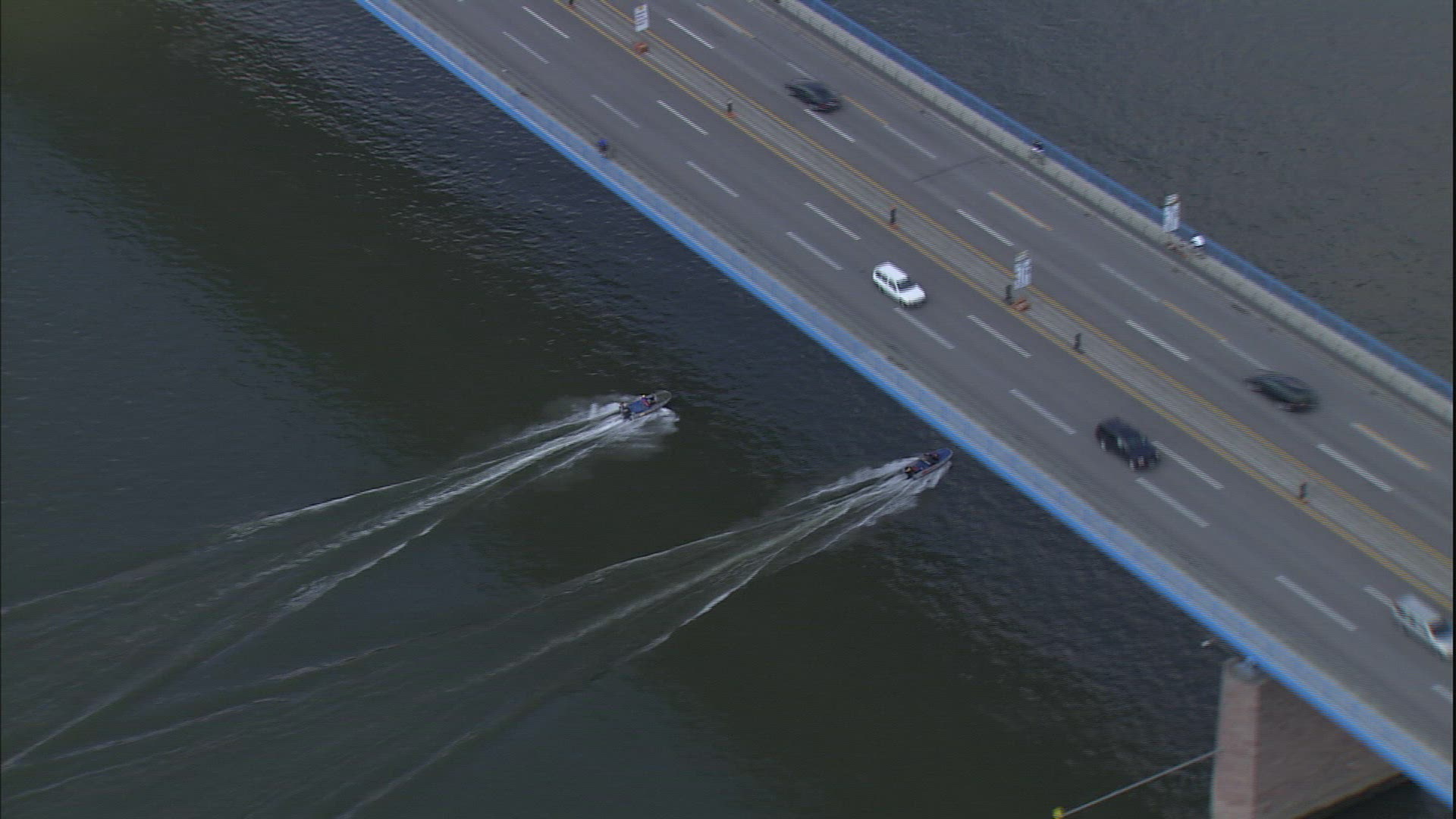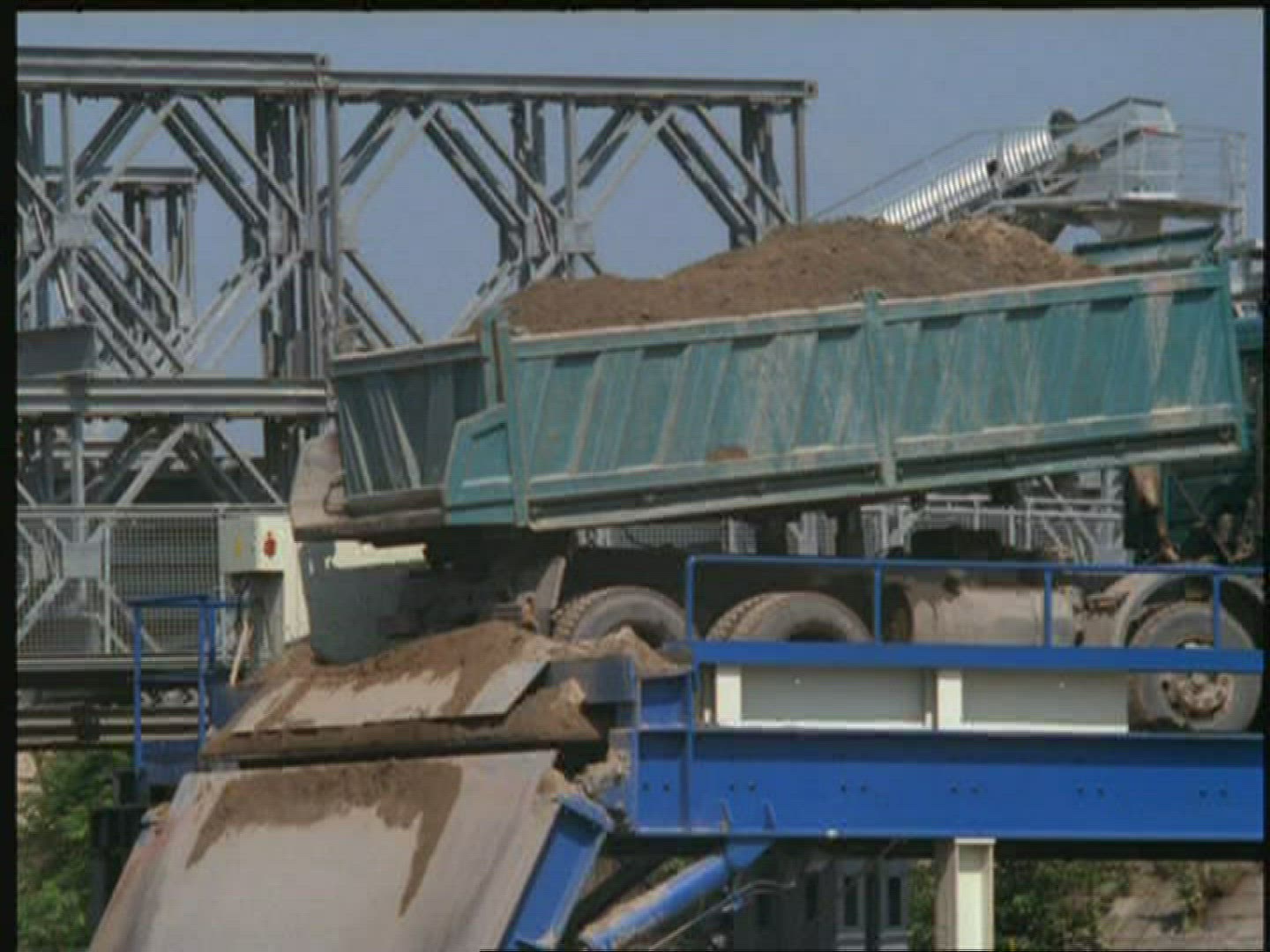 > 1969: a big river near to road parking the lorry top angle view fast going water near house morning