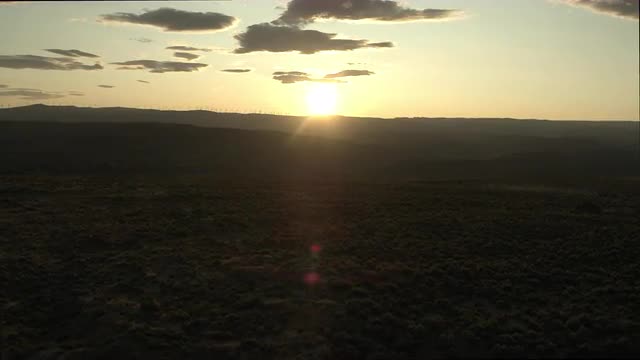 1077443 - Wide aerial of desert at sunset
