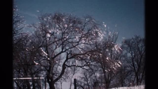 723395 - 1961: a cold chilling climate everything covered in snow, branches of trees environ by snowflakes. M