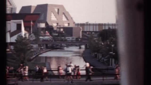 > 1967: driving past asian style buildings with tourist walking down sidewalk MONTREAL CANADA